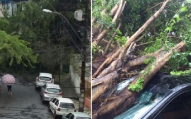 Árvore cai e atinge três veículos no bairro da Graça
