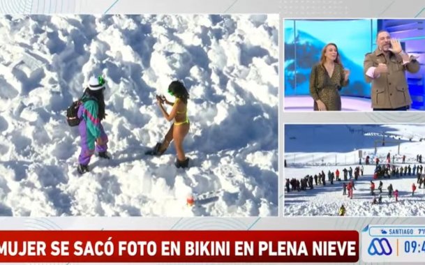 29 de Junho de 2024Os apresentadores chilenos ficaram impactados com a atuação da “desinibida da brasileira", que no meio da neve resolveu tirar algumas fotos com um minúsculo biquíni amarelo