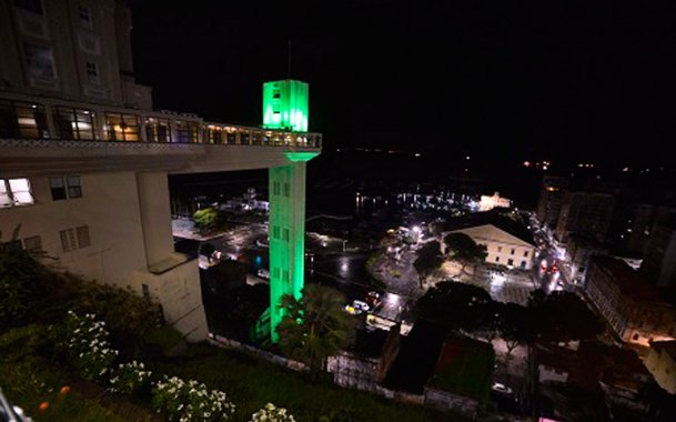 Ação de combate ao glaucoma deixa Elevador Lacerda iluminado na cor verde