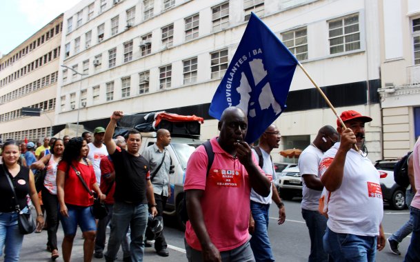 Sindicato dos Vigilantes faz passeata no bairro do Comércio