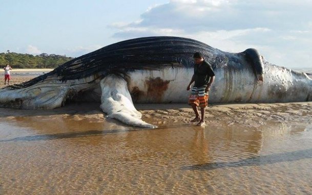 Baleia jubarte de 15 metros é encontrada morta em praia da Bahia
