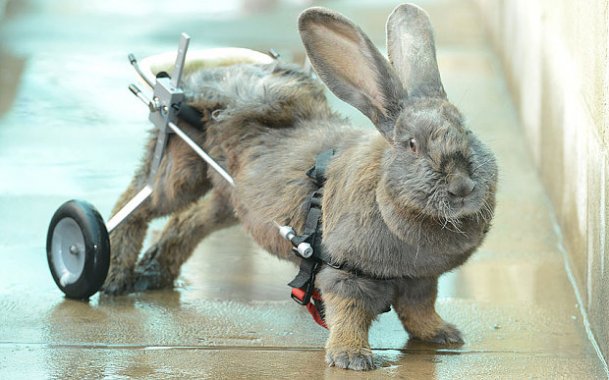 19 de Agosto de 2015Uma coelho-fêmea que ficou paralítica pode andar novamente após sua dona, a britânica Melanie James, que vive em em Cúmbria, ao norte da Inglaterra, construir uma espécie de cadeira de rodas.