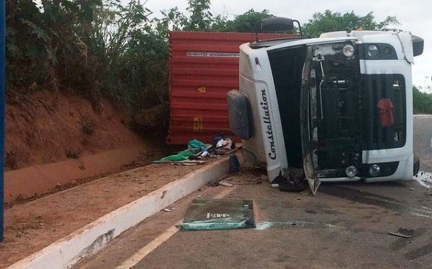 Carreta tombada na Via Expressa causa lentidão no trânsito